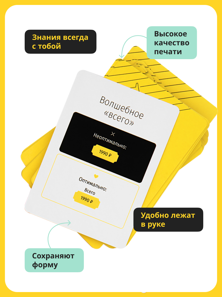 Умнокарты: 102 игральные карты сделают ваши планерки и стратегические сессии еще более динамичными. Практические советы по тому как правильно назначить, презентовать, изменить цену и улучшить процесс оплаты. Хорошее дополнение к книге "Прайсхаки".